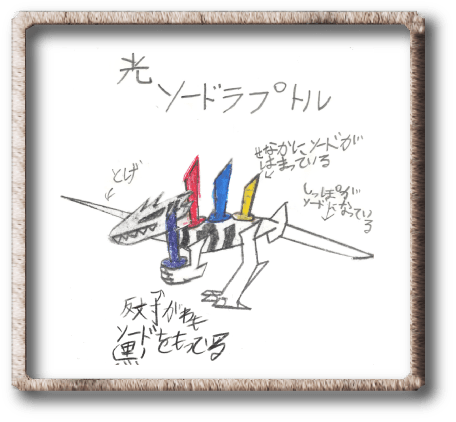 両手にソード、しっぽもソード、背中にも3本のソード、頭のトゲもソード!